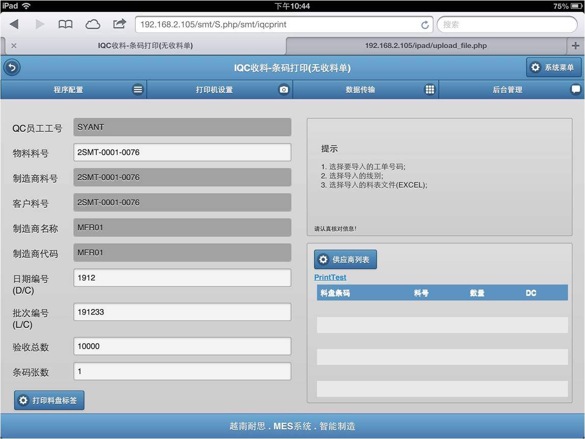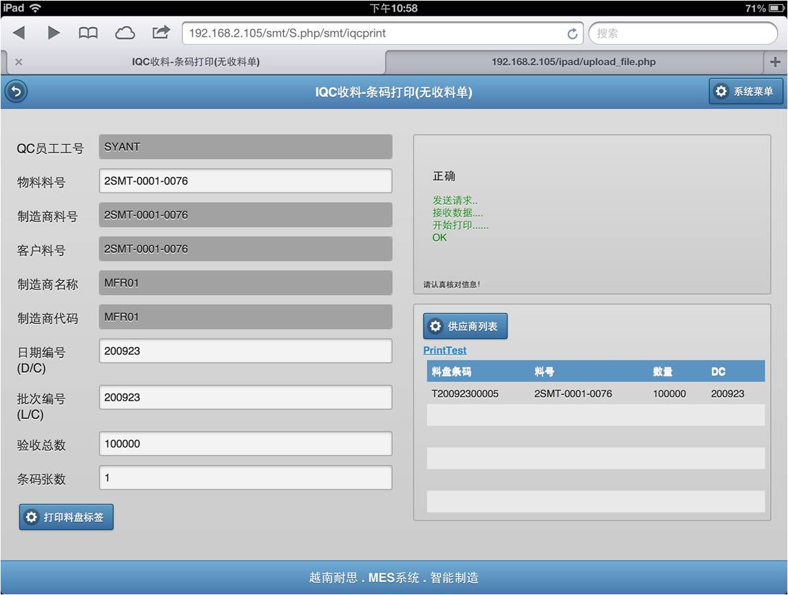 IQC人员收料检查后,进行物料条码打印。在没有ERP系统、没有收料单号的时候,需要人工输入物料料号,DC,LC和数量等信息。注意,这里很多信息都要确保数据的正确性。