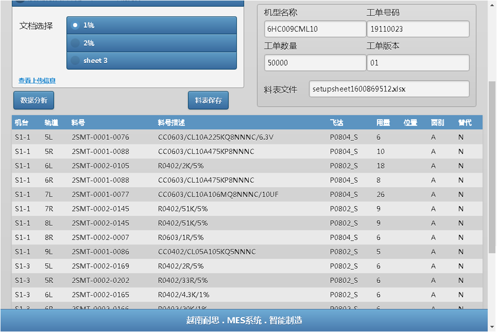 注:料表导入系统后,PDA系统就能实时看到这份料表。在料表导入系统后,实际生产时,SMT产线还需要将该料表上线。接下来介绍一下PDA的料表上线过程。