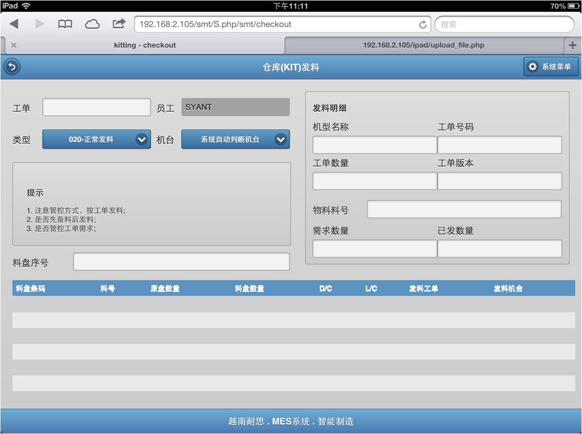 KITING线边仓发料界面如下:
