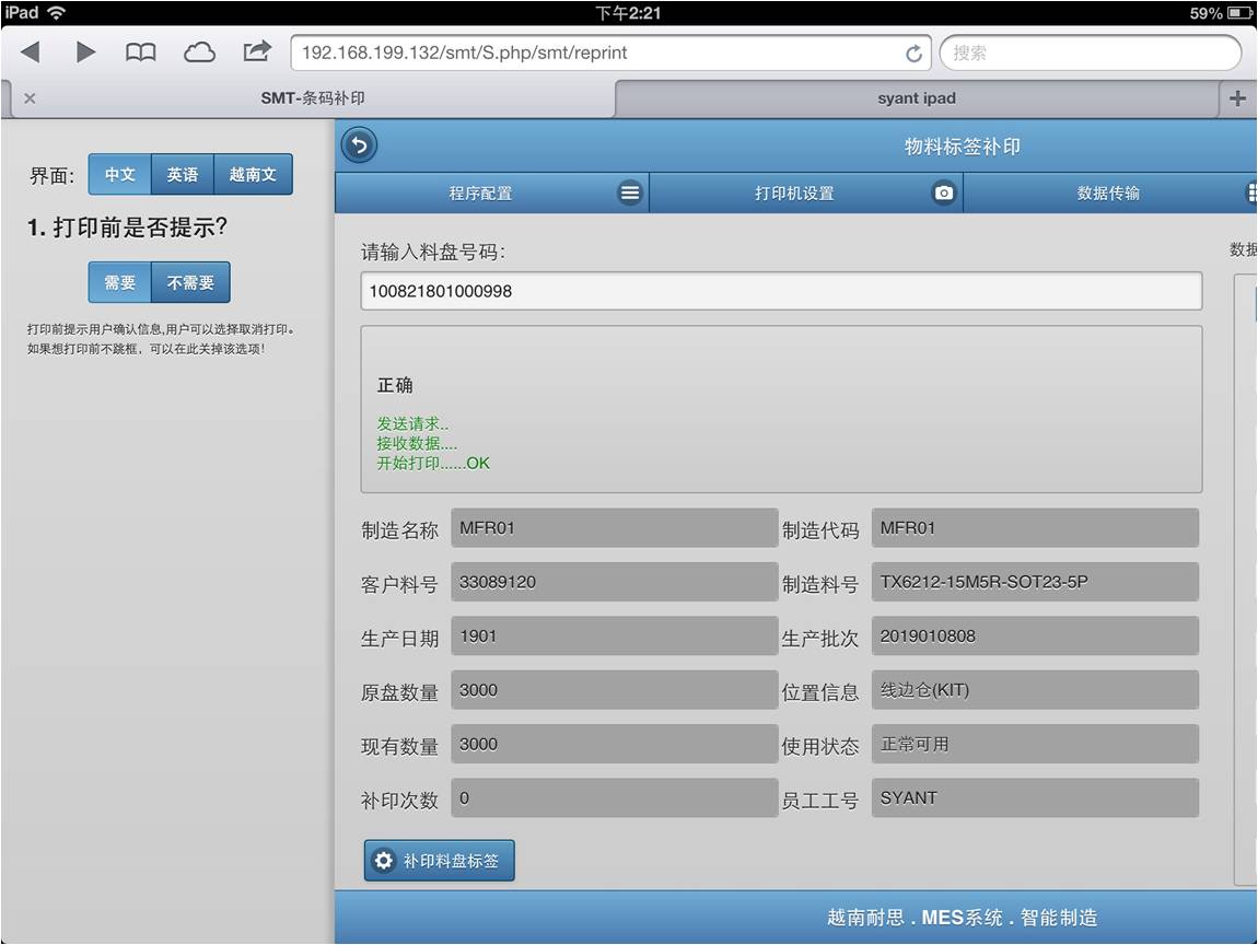 注意,每次打印,系统都会提示用户确认。如果不想有弹出确认对话框,可以在“程序配置”里关掉。