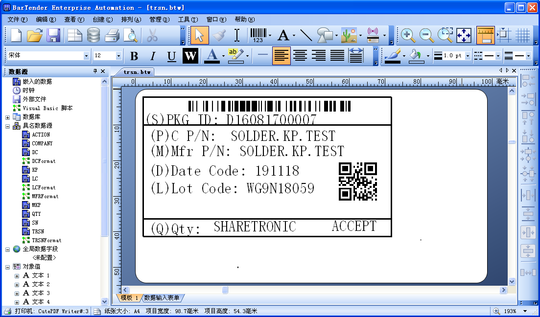 BarTender模板下载: [ trsn.btw ]