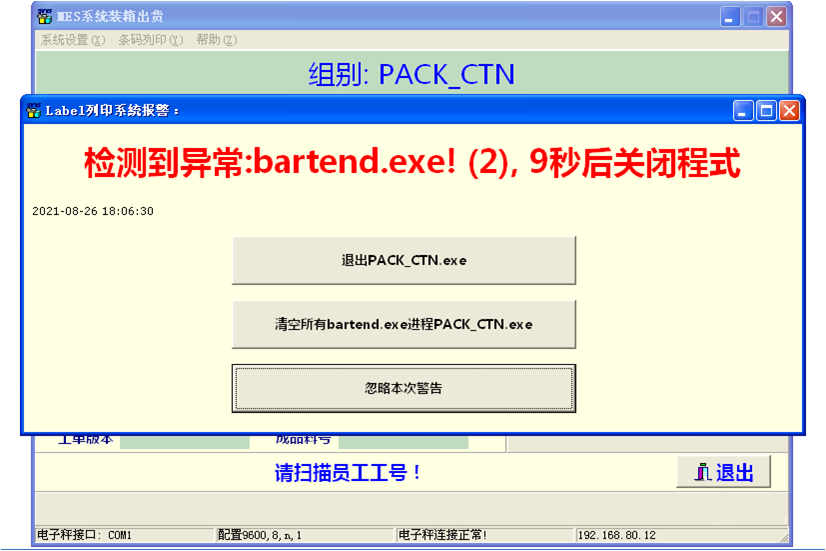 当员工正常作业,MES程序会监控所加载的模板的有效性,当发现模板有被人为改动过,则会看到如下画面: