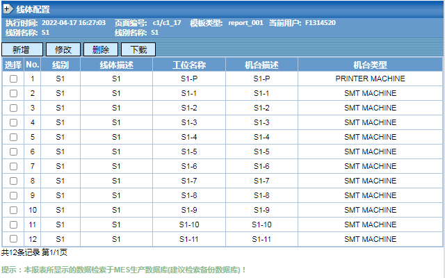 锡膏和钢网对应的机台类型是SMT印刷机,需要先在SMT线体配置里维护机台为印刷机类型,注意一般机台命名为线别+P。
