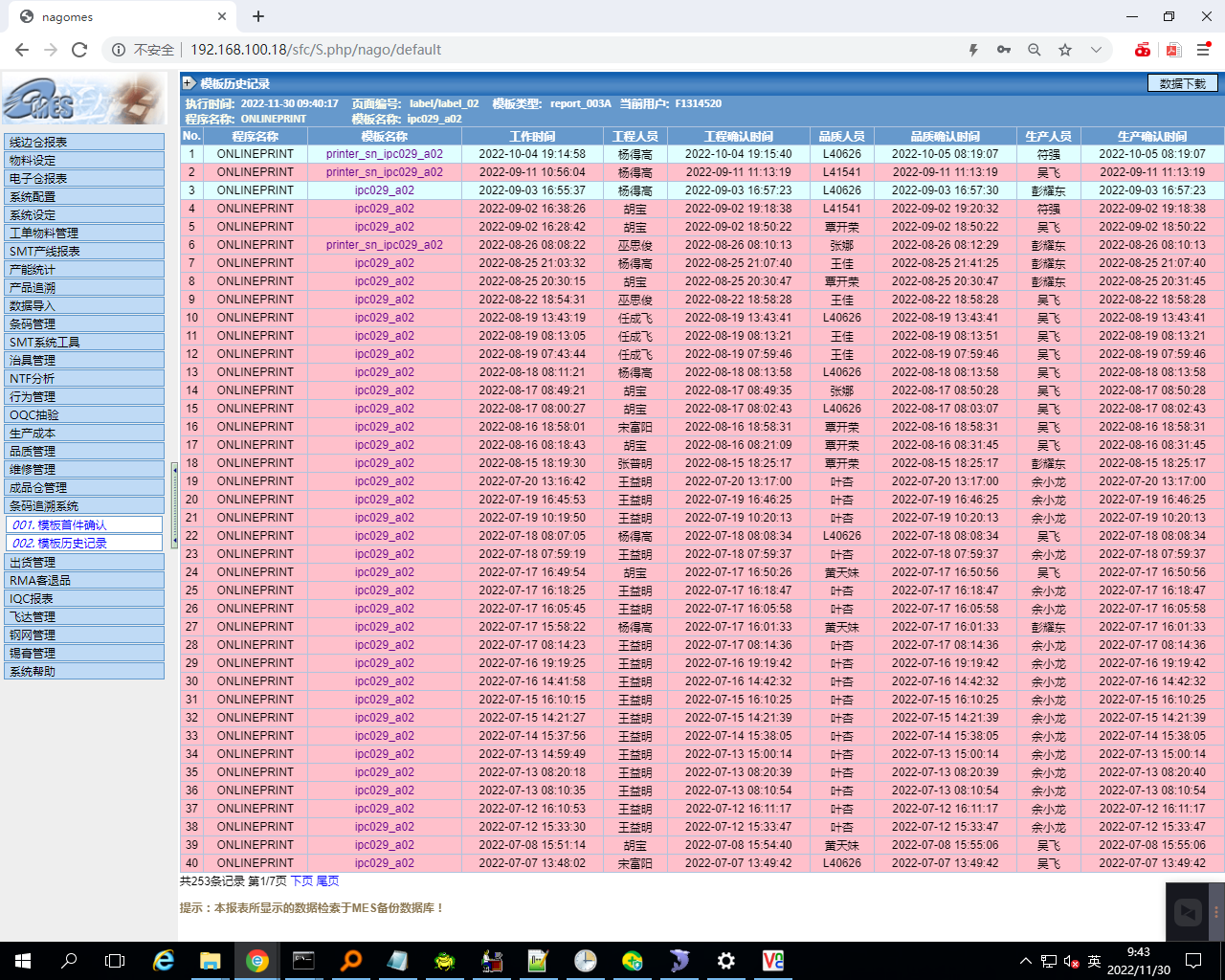 生产人员信息追溯