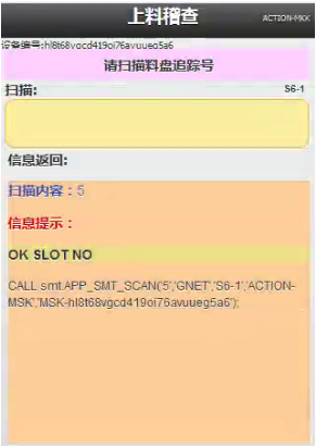 注意,有“在线稽核”和“上料稽核”两个功能模块。“在线稽核”是做整机台的物料检查,按轨道号一盘一盘的稽核,无需扫描轨道号,系统会提示扫哪个轨道的料,按提示来扫描。“上料稽核”这个是我们要用到的,单轨道检查。如下图: