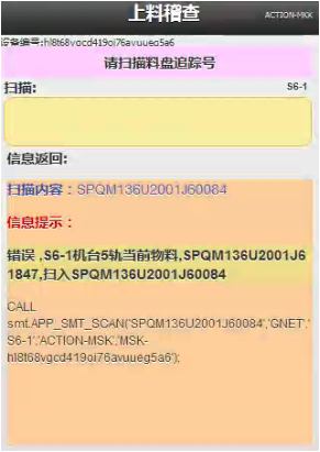 按PDA界面的提示“料盘号“,如果系统检查错误,如下: