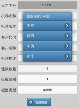 客户代码/客户名称: 该新机型属于哪个客户的产品,是菜单选择的方式输入。选择客户后系统会自动填入客户代码和客户名称。