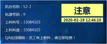 警告 | 作业员上料时,系统检查到错料的记录 | 需要立即处理 |