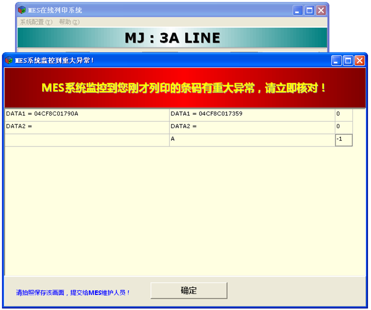 以下内容,以在线列印工位为范例,介绍MES系统的条码监控功能以及注意事项。