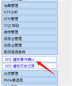 MES系统所有带有列印功能的程序,都多了一个“模板监控”的按钮,如下图红色框线所示。如果系统监控到模板是正确的(有被品质、生产、工程三个单位的人员在MES系统中确认过),则显示“模板正确”,可以正常生产。如果系统监控模板无效,则显示“首件确认”的红色文字。